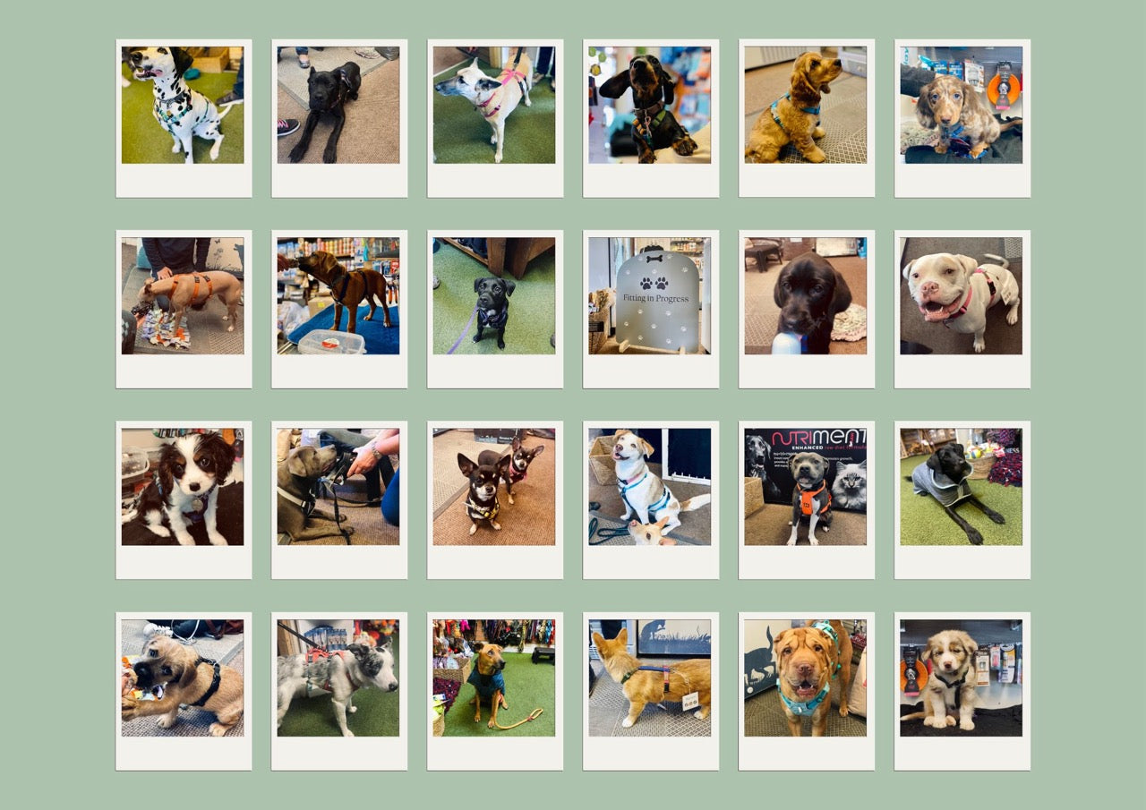 Scroll down to see our Fittings FAQs and to book an appointment! If you're unable to bring your dog into the shop, we also offer a virtual fitting service.