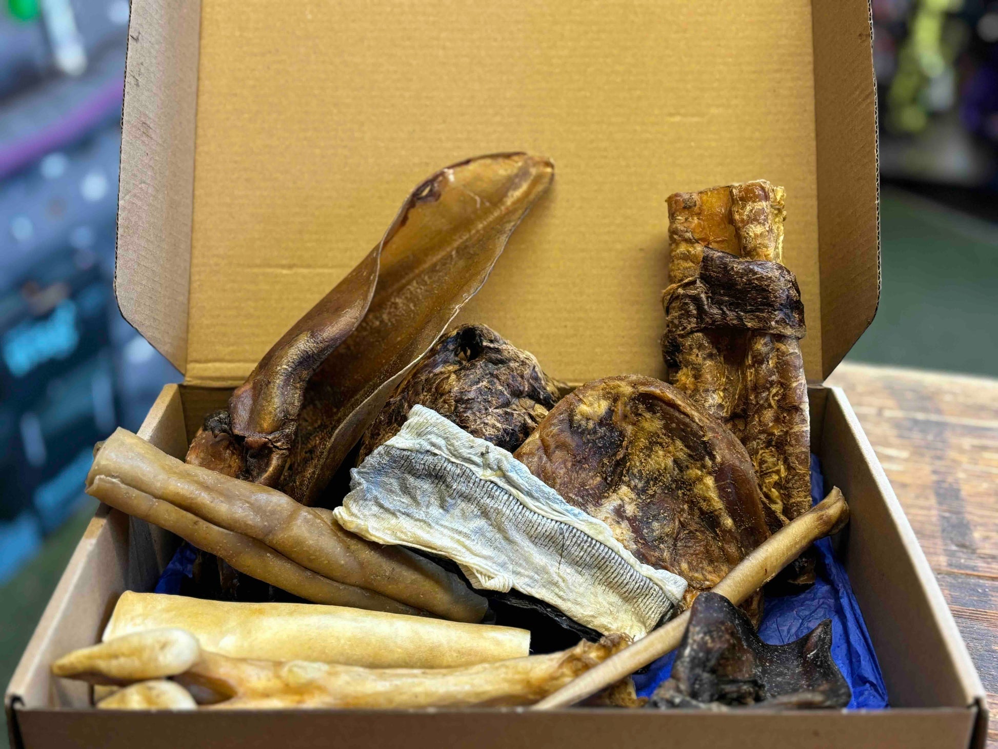 Includes an assortment of hard and soft natural chews. £20/month. |