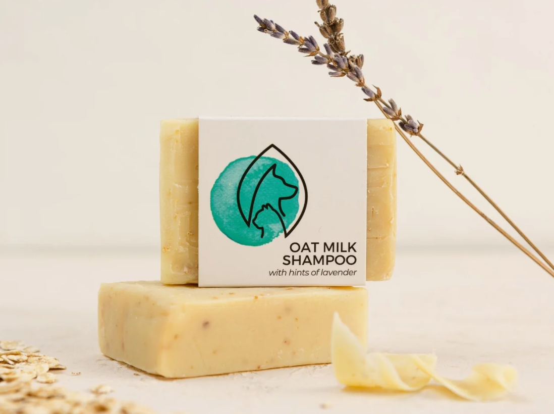 Handmade in small batches in the UK. Made with premium human-grade ingredients, such as organic Oat milk, which well known for soothing sensitive and irritated skin and will make your dog's coat feel and smell incredible.