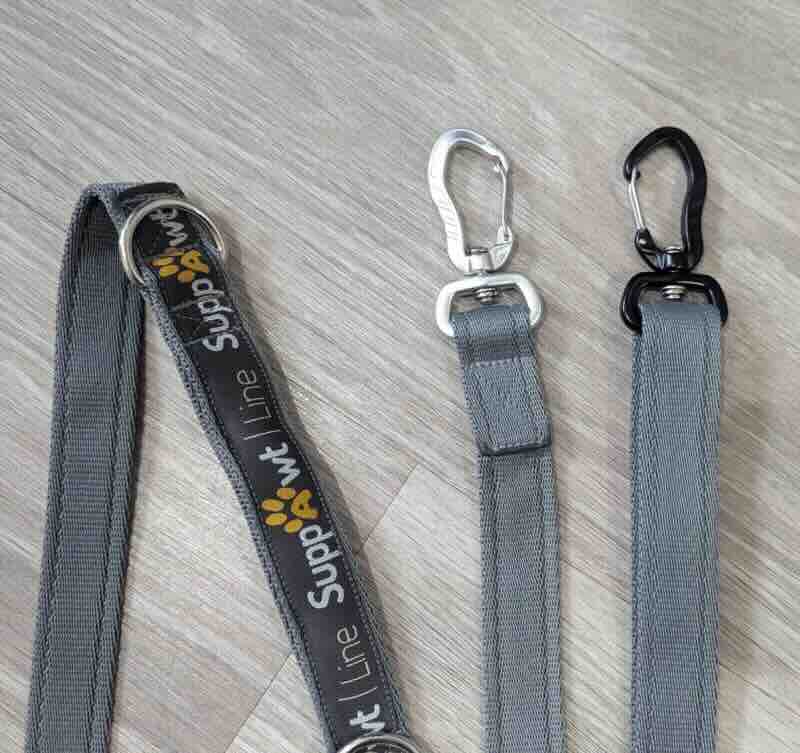 Lightweight carabiner clip. Easy to identify black clip to go on the back of the dog.